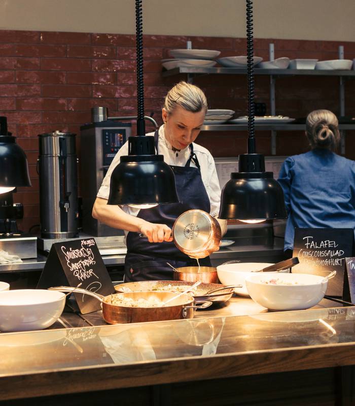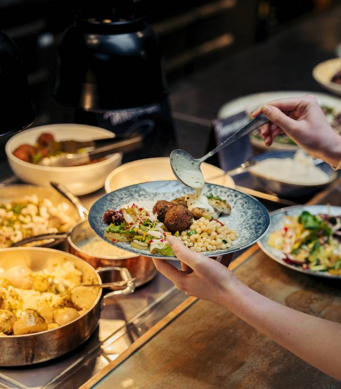 Buffén är anpassad för en arbetsdag där lunchen gärna får vara både god och effektiv. Ät på plats i restaurangen eller ta med till en av husets öppna ytor.