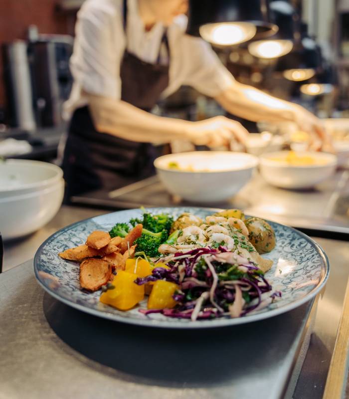 På B26 står vällagad mat, trivsam miljö och medvetna val i centrum. Vi serverar en säsongsanpassad lunchbuffé med kreativa vegetariska alternativ samt utvalda inslag av fisk eller kött. Vårt hållbarhetsarbete “B aware” genomsyrar hela verksamheten, från valet av råvaror till hur vi minskar matsvinn. Genom att använda till exempel grönsaker med kort datum skapar vi måltider som både smakar gott och gör gott. Välkommen till en restaurang där varje servering är ett medvetet val – både för dig och miljön.